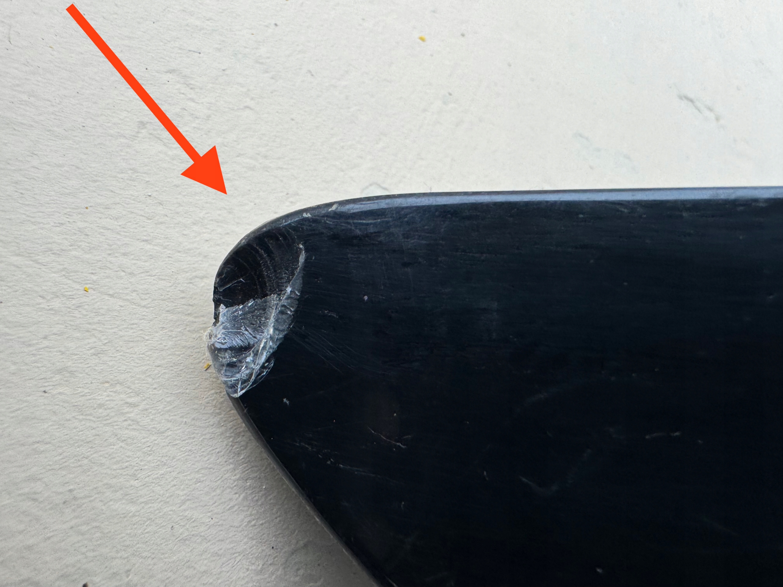 USZKODZENIA SZKŁA ZAZNACZONE STRZAŁKĄ