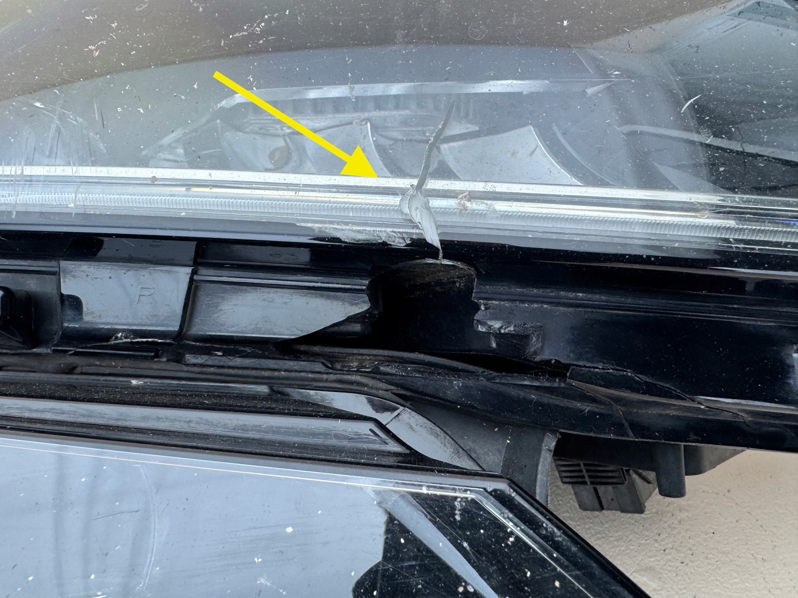 STAN DOBRY POZA USZKODZENIEM ZAZNACZONYM STRZAŁKA ORAZ PRZETARCIAMI WIDOCZNYMI NA SZKLE